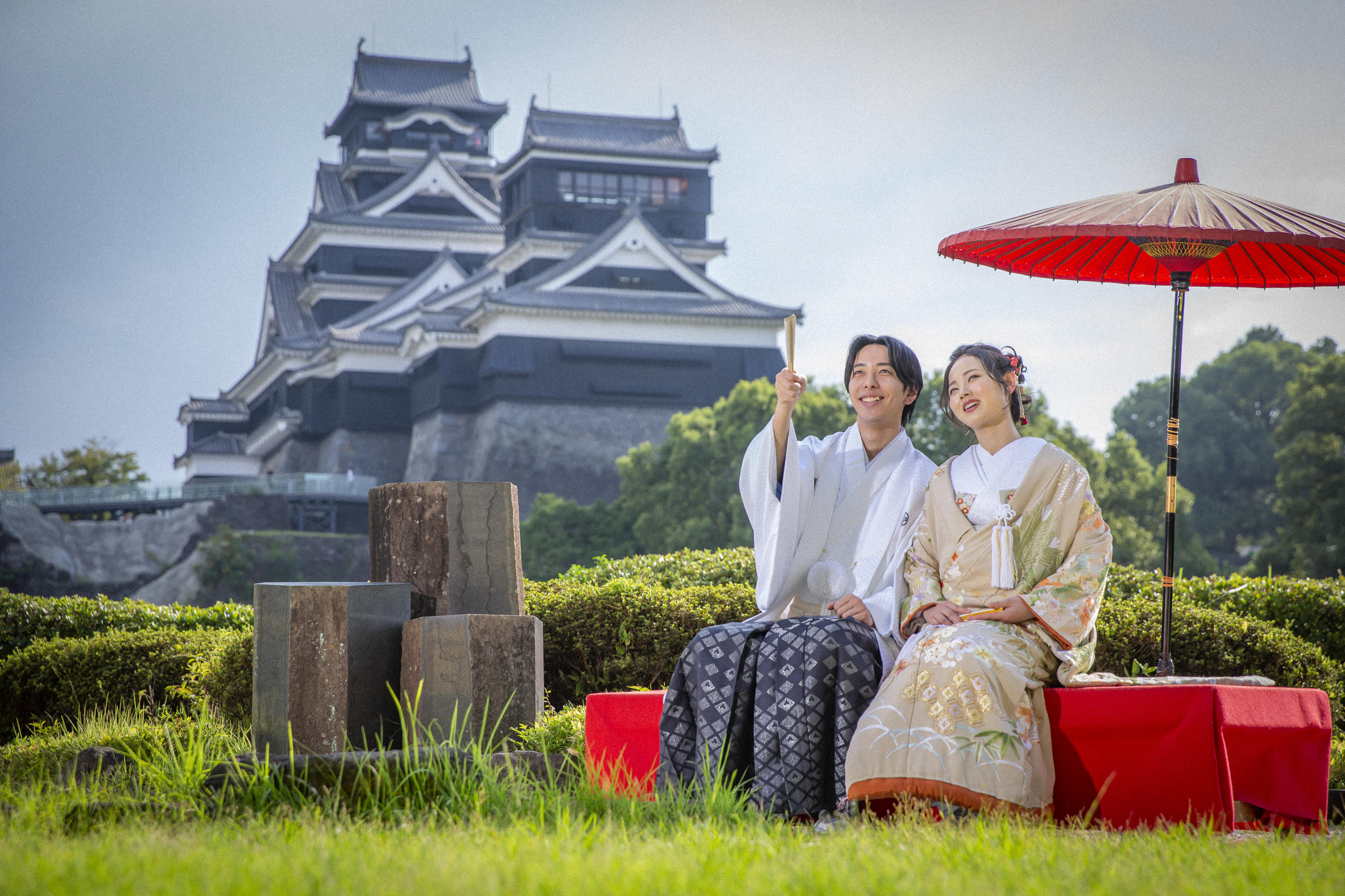 全国ここでしか叶わないロケーションを活かした熊本城を望む庭園での人前式。